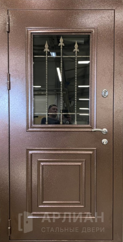 Входная дверь с ковкой металлическая со стеклопакетом №7
