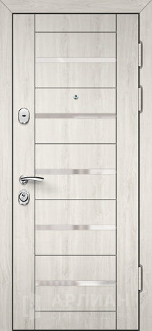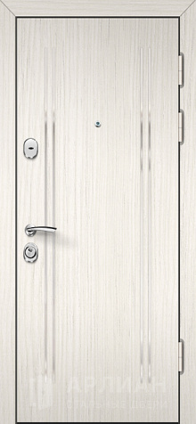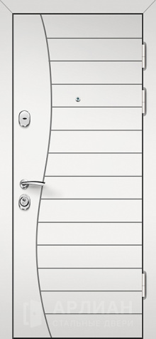 Входная белая дверь с отделкой "волна" с верхним и нижним замками №16