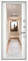 Усиленная входная дверь "Беленый дуб" внутри с зеркалом и двойным контуром уплотнения в белом матовом цвете №10