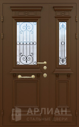 Двустворчатая металлическая дверь со стеклопакетом в коттедж  №17