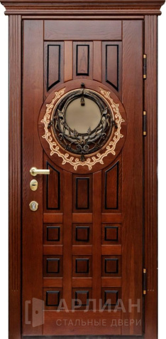 Коричневая дверь входная из массива со стеклом №110